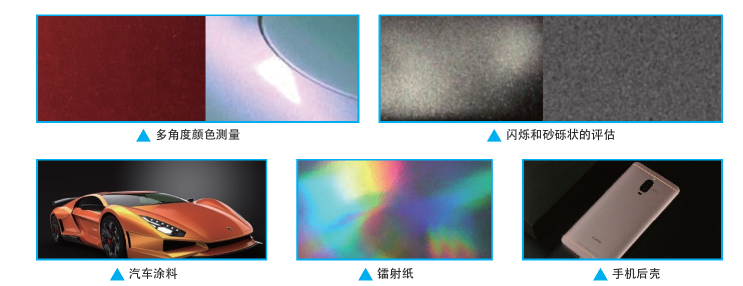1. 15°、45°、110°三角度測量顏色數(shù)據(jù)、閃爍和顆粒等級;