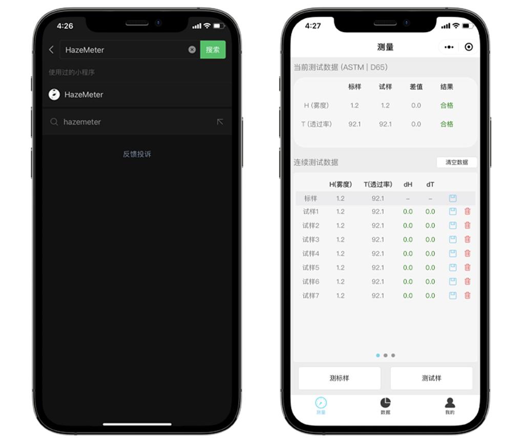 4、支持連接手機小程序“HazeMeter”,數(shù)據(jù)跟隨賬號,云端存儲,不丟失