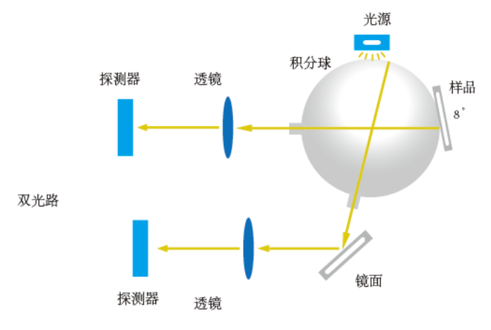 照明/受光系統(tǒng) | 反射:d/8(漫射照明,8°方向接收) ,透射:d/0(漫射照明,垂直方向接收) |