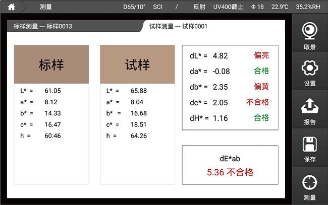 色差公式 | ΔE*ab,ΔE*CH,ΔE*uv,ΔE*cmc,ΔE*94,ΔE*00,ΔEab(Hunter),555色調(diào)分類 |