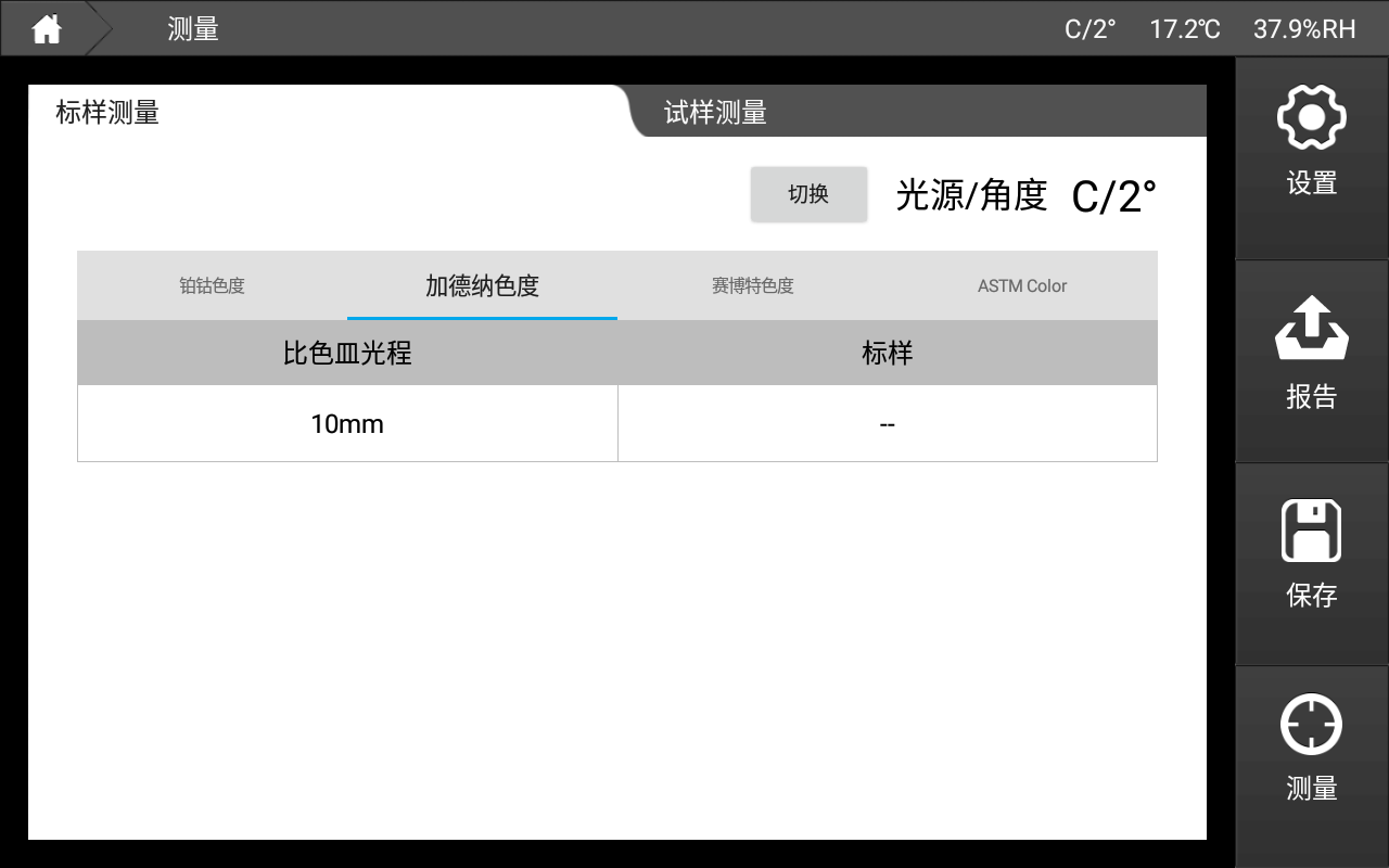 其它指標藥典(中國藥典,歐洲藥典,美國藥典),WI(ASTM E313-20,ASTM E313-73,CIE,ISO2470/R457,Hunter,Taube Berger Stensby),YI(ASTM D1925,ASTM E313-20,ASTM E313-73),Tint(ASTM E313-20),同色異譜指數(shù)Milm,APHA,Hazen,Pt-Co(鉑鈷指數(shù)),Gardner(加德納指數(shù)),鐵鈷指數(shù),Saybolt(塞波特指數(shù)),ASTM Color,EBC(啤酒色度),ICUMSA Color(糖色度)