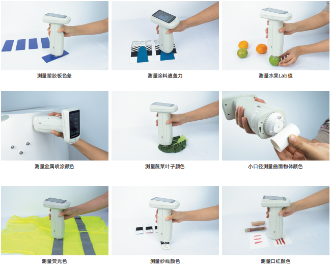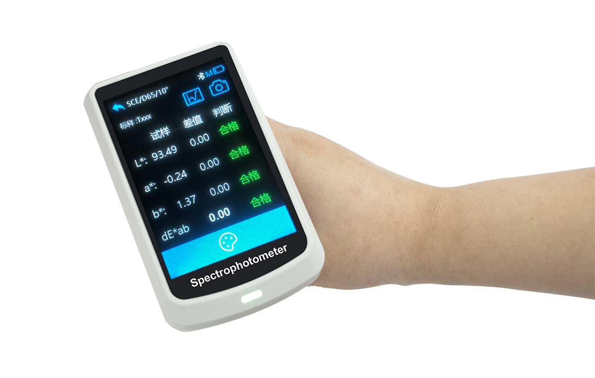 | 測(cè)量指標(biāo) | 光譜反射率,CIE-Lab,CIE-LCh,HunterLab,CIE-Luv,XYZ,Yxy,RGB,色差(ΔE*ab,ΔE*cmc,ΔE*94,ΔE*00), 白度(ASTM E313-00,ASTM E313-73,CIE,ISO2470/R457,AATCC,Hunter, Taube Berger Stensby), 黃度(ASTM D1925,ASTM E313-00,ASTM E313-73), 黑度(My,dM),沾色牢度,變色牢度,Tint(ASTM E313-00), 色密度CMYK(A,T,E,M),同色異譜指數(shù)Milm,孟塞爾,遮蓋力,力份(染料強(qiáng)度,著色力) |
