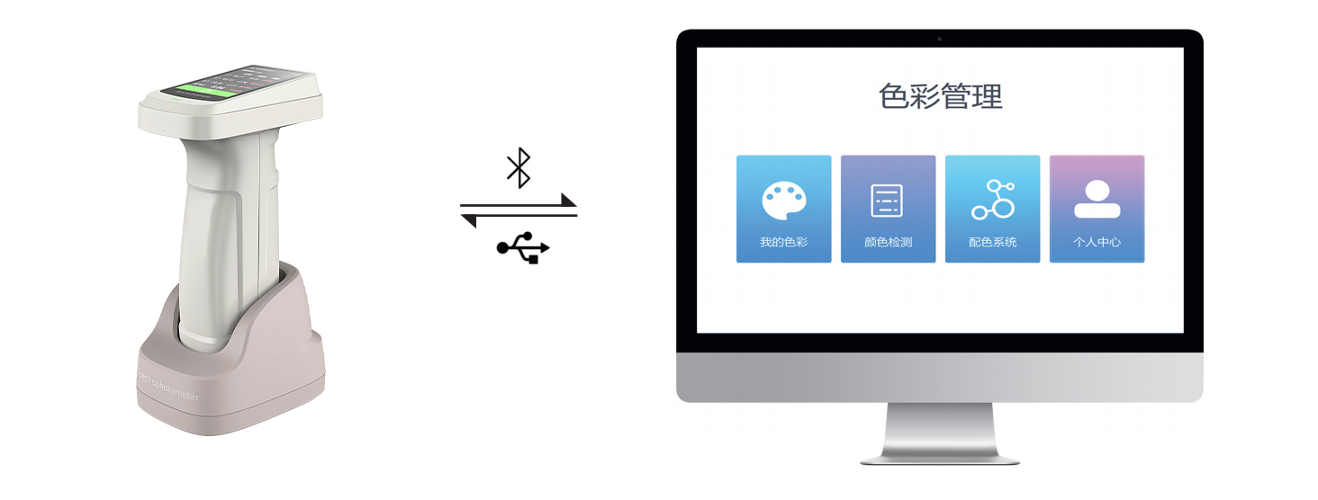 DS-700C-3分光測(cè)色儀/分光色密度儀隨儀器附送Windows色彩管理系統(tǒng)ColorExpert,通過(guò)藍(lán)牙或USB線連接DS-700C-3分光測(cè)色儀/分光色密度儀。