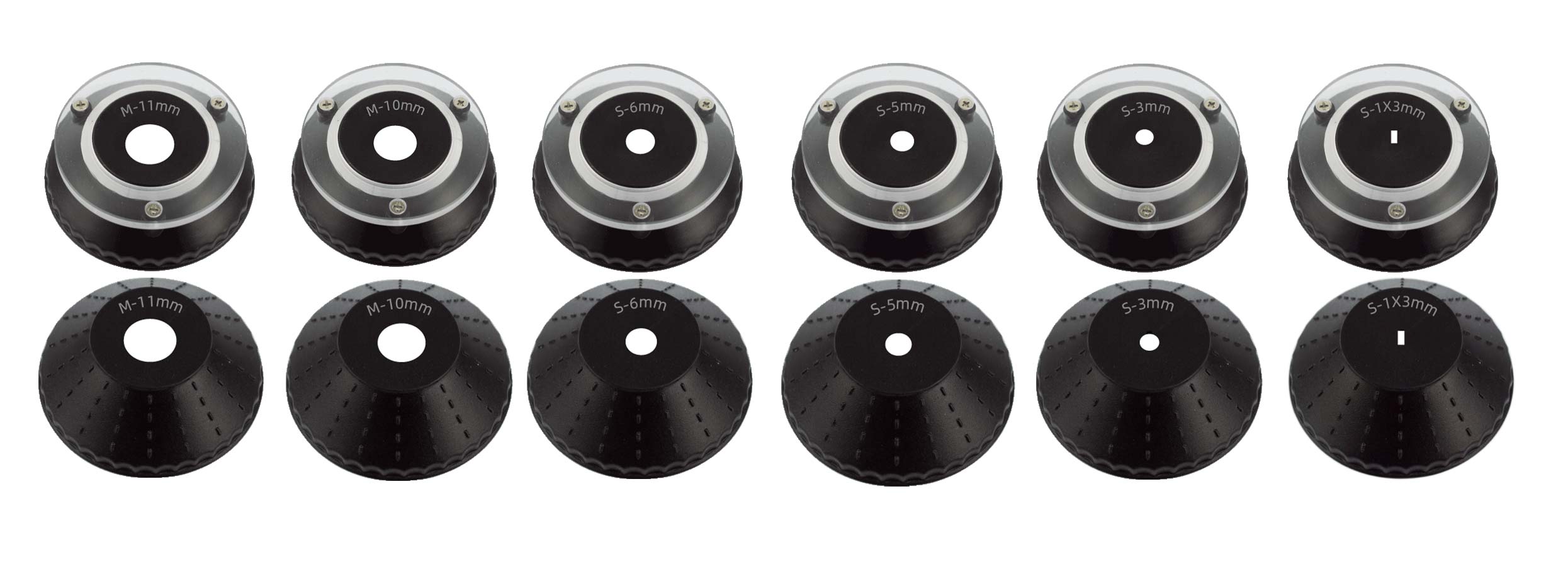 | 測(cè)量口徑 | 穩(wěn)定型和靈巧型共12個(gè):Φ11mm,Φ10mm,Φ6mm,Φ5mm,Φ3mm,1*3mm ▽11mm,▽10mm,▽6mm,▽5mm,▽3mm,▽1*3mm |