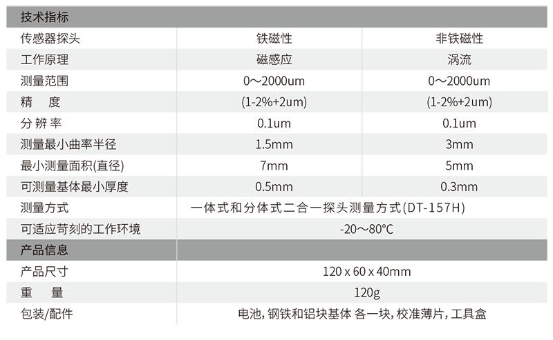 電池,鋼鐵和鋁塊基體 各一塊,校準(zhǔn)薄片,工具盒