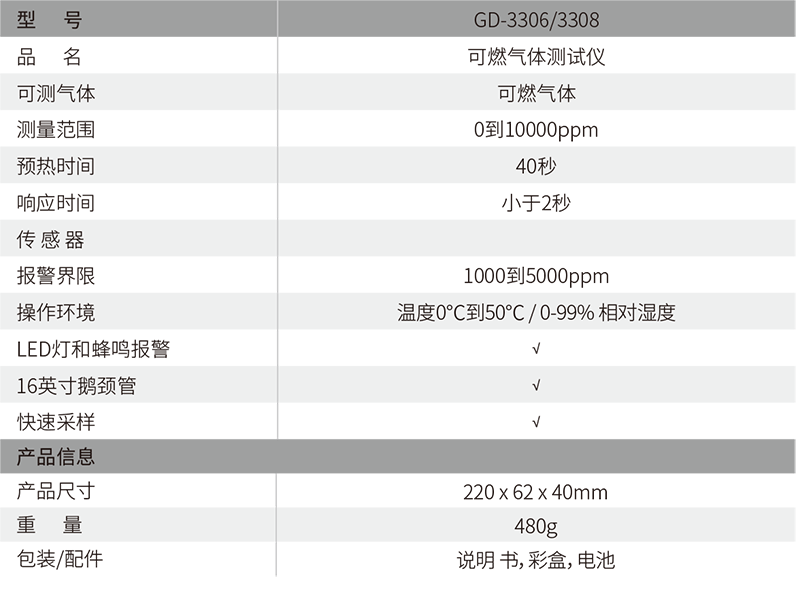 CEM GD-3306\3308是CEM華盛昌新推出的一款專業(yè)氣體檢漏儀,雙注塑設(shè)計(jì)堅(jiān)固耐用,明亮大屏LCD,可彎曲鵝頸管,高靈敏度,能及時(shí)識(shí)別和定位燃?xì)獾刃孤稓怏w。廣泛應(yīng)用在燃?xì)狻⑹突ぁh(huán)保、暖通等領(lǐng)域。