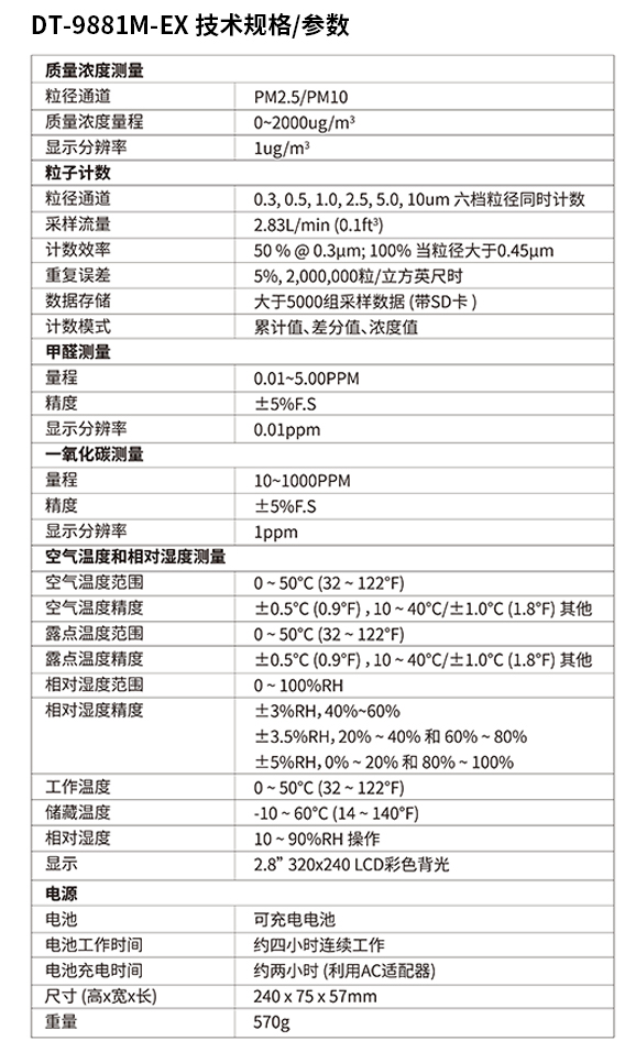CEM DT-9881M-EX PM2.5粉塵顆粒物空氣質(zhì)量檢測(cè)儀