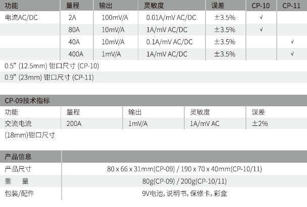 華盛品 CP-10/11可與電力諧波分析儀、示波器、萬用表、或其他電壓測量設(shè)備兼容。