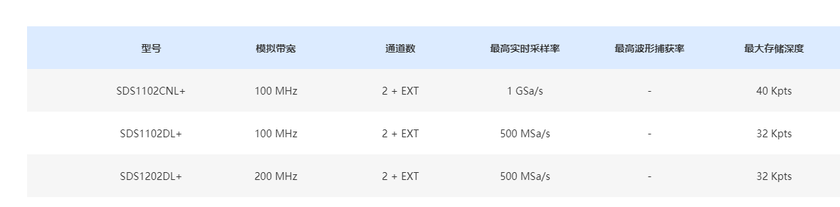 | 實(shí)時(shí)采樣率 | SDS1102CNL+:1 GSa/s SDS1102DL+:500 MSa/s SDS1202DL+:500 MSa/s |