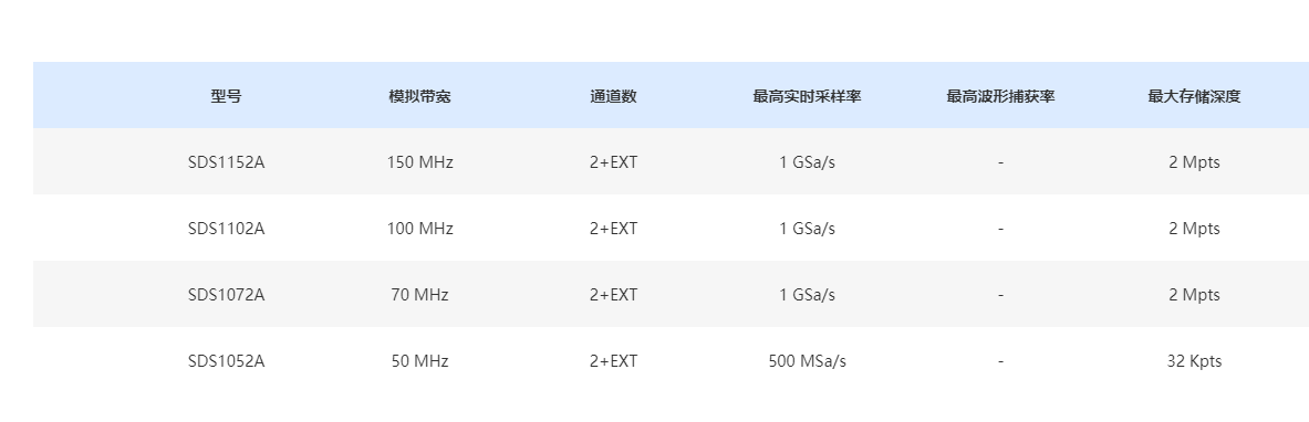 | 實(shí)時(shí)采樣率 | SDS1052A:500 MSa/s SDS1072A:1 GSa/s SDS1102A:1 GSa/s SDS1152A:1 GSa/s |