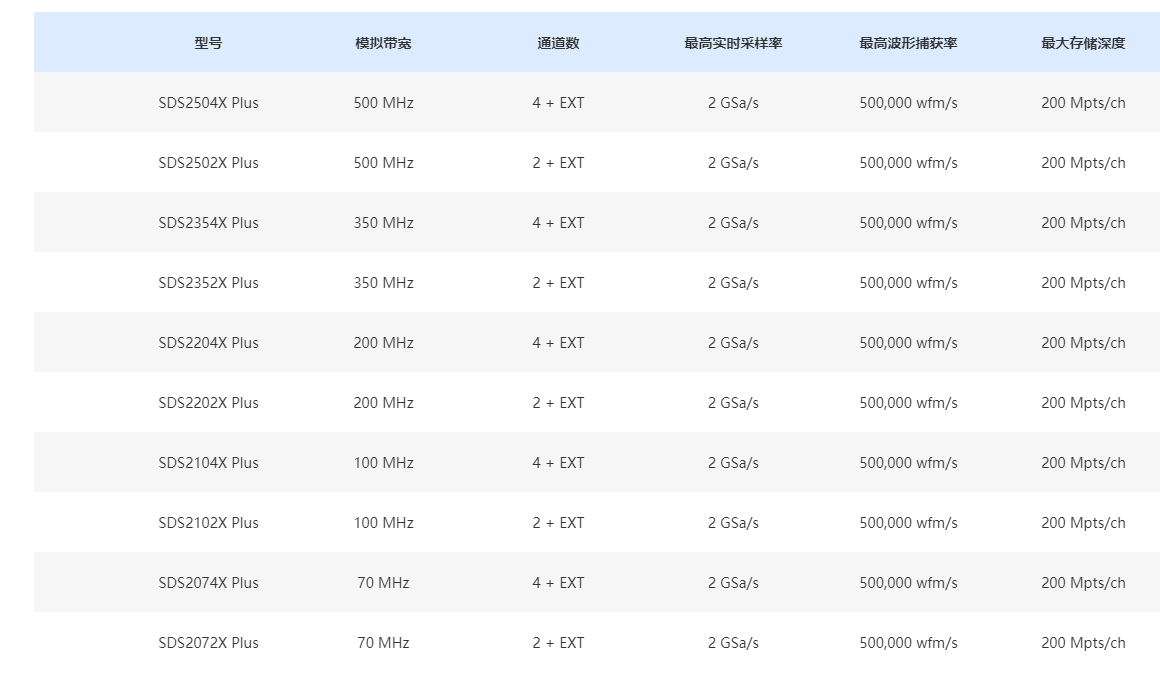 | 存儲深度 | 200 Mpts/CH |