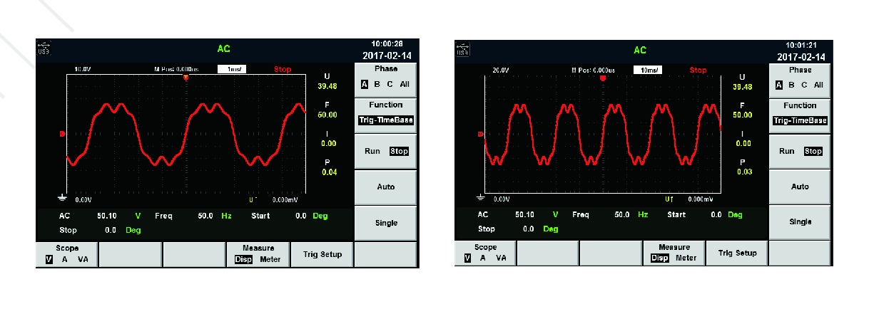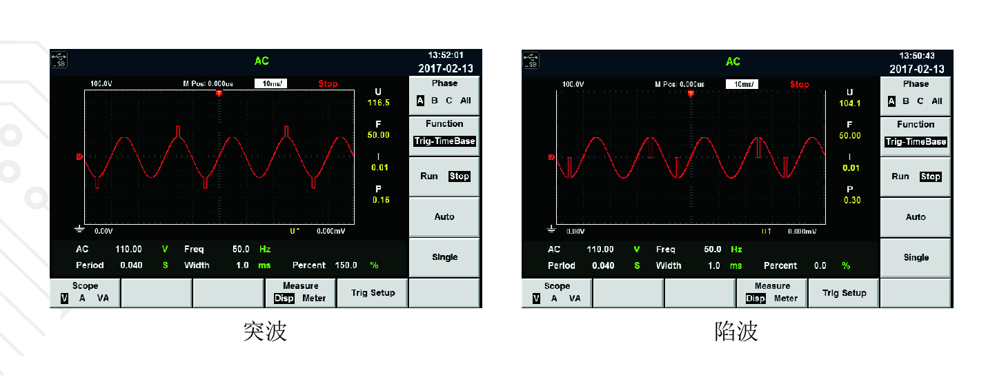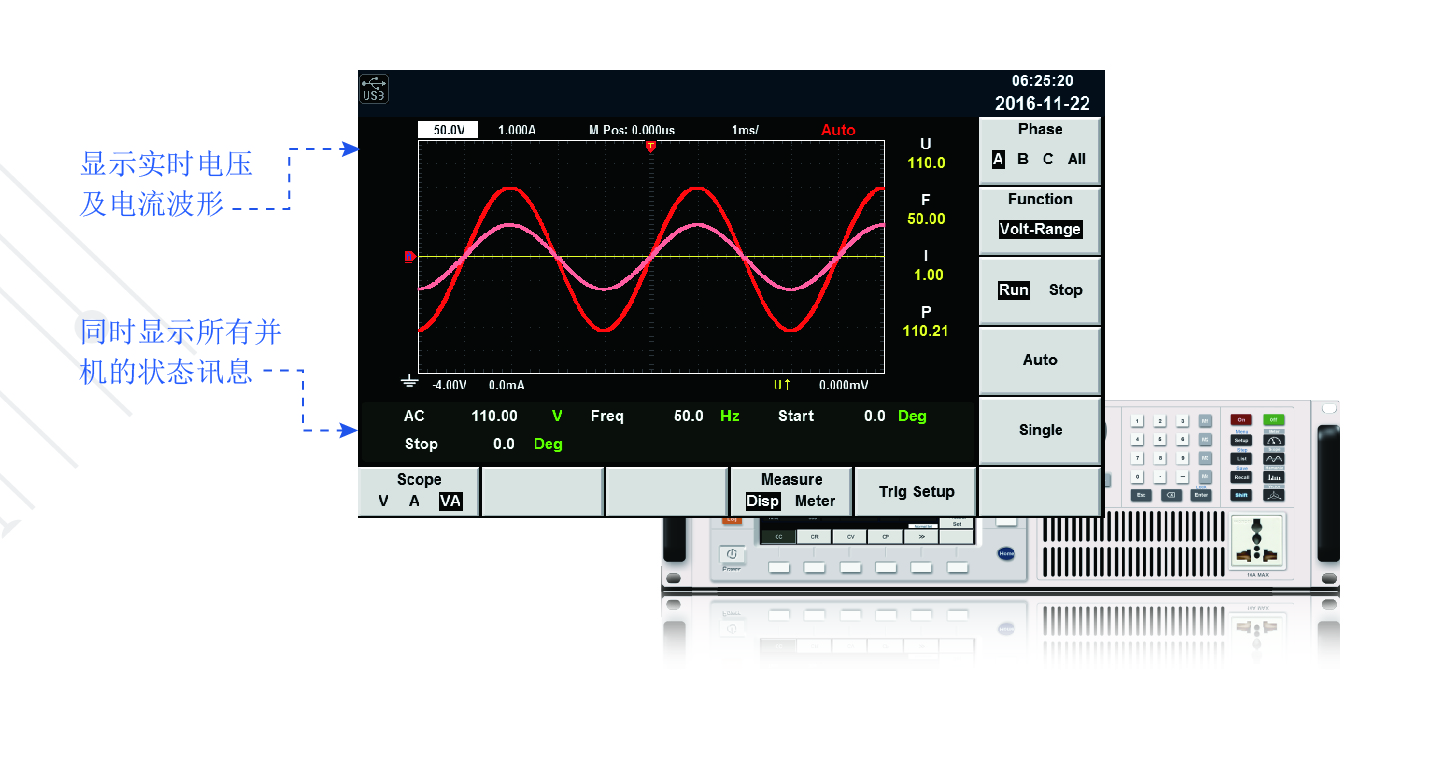 可顯示單機(jī)或者并機(jī)情況下電壓及電流的實(shí)時(shí)波型