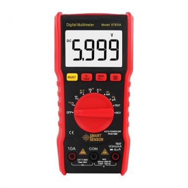 ST833A是一款袖珍型3 5/6位自動(dòng)數(shù)字儀表,該機(jī)性能穩(wěn)定、高精度、高可靠性、讀數(shù)清晰、具有過載保護(hù)功能。用AAA 1.5V電池驅(qū)動(dòng),該儀表采用超大屏幕LCD 顯示器,采用升壓供電,即使在2.3V低電池邊緣,也能保證背光的超高亮度,該表攜帶方便,是一款廣大用戶極其喜歡的儀表,背光可長亮也可在15秒后自動(dòng)關(guān)閉。此系列儀表可用來測量直流電壓和交流電壓、直流電流和交流電流、電阻、電容、二極管、通斷測試、零火線判斷、頻率測量及真有效值等參數(shù),是一款性能優(yōu)越的工具儀表,是實(shí)驗(yàn)室、工廠、無線電愛好者及家庭的理想工具。