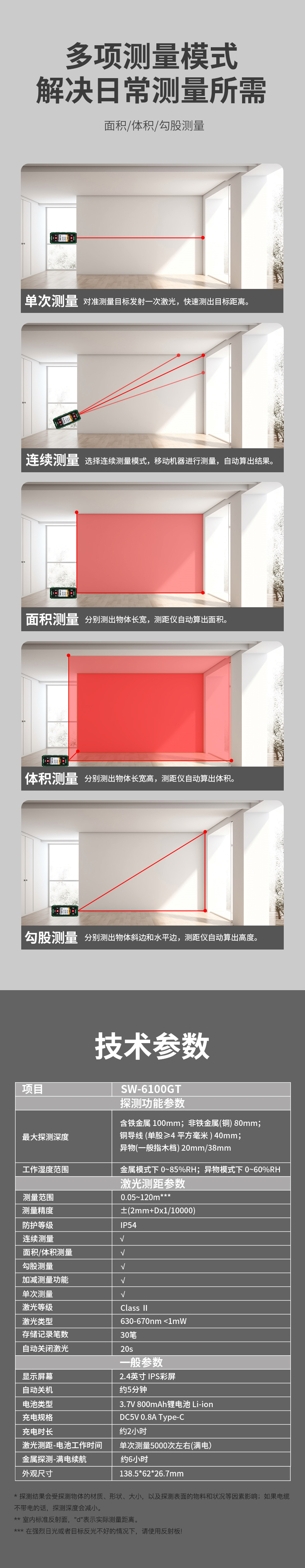 SW-6100GT 多功能測(cè)距墻體探測(cè)儀