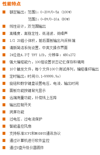 TH6200系列電源前后面板都可以輸出,具有1/2標(biāo)準(zhǔn)機(jī)箱尺寸,配備齊全的通訊接口,支持SCPI和MODBUS通訊協(xié)議,使其可以方便的集成于自動(dòng)化系統(tǒng)上。