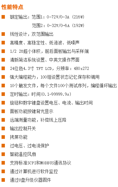TH6200系列電源前后面板都可以輸出,具有1/2標(biāo)準(zhǔn)機(jī)箱尺寸,配備齊全的通訊接口,支持SCPI和MODBUS通訊協(xié)議,使其可以方便的集成于自動(dòng)化系統(tǒng)上。