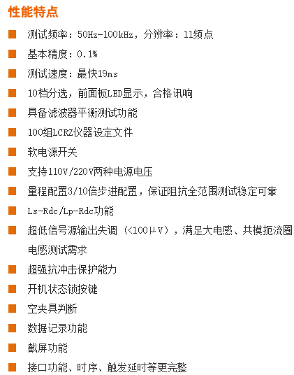 測試頻率 | 50,60,100,120,1k,10k,16k,20k,40k,50k,100k共11點(diǎn) | |