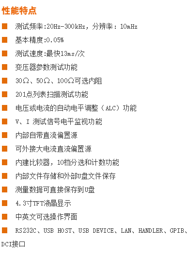 列表掃描 | ·201點(diǎn)列表掃描 ·可單獨(dú)對頻率、AC電壓/電流、 內(nèi)/外DC偏置電壓/電流進(jìn)行列表掃描測試 ·前10個掃描點(diǎn)可單獨(dú)分選 | |||