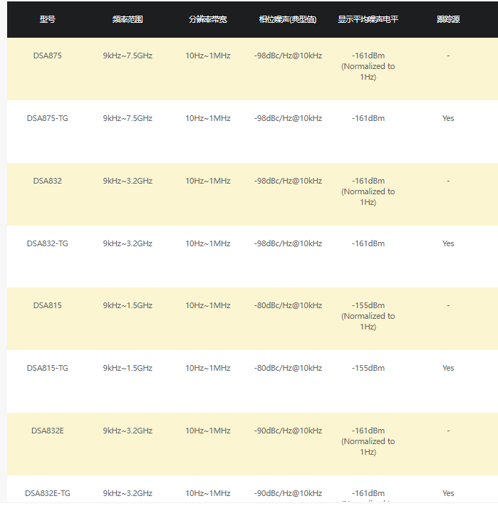微弱信號的測試容易受到頻譜儀本身的本底噪聲影響。DSA800系列顯示平均噪聲電平低至-161dBm,可以有效保證對微弱信號的測試能力。