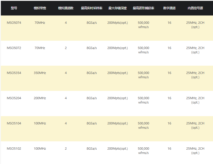 MSO5000系列提供了350MHz帶寬下最高8GSa/s的實(shí)時(shí)采樣率,約23倍的采樣帶寬比使其在同級(jí)別示波器產(chǎn)品中占據(jù)領(lǐng)先地位,同時(shí)具備200Mpts的超長(zhǎng)波形存儲(chǔ)深度。