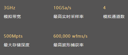 MSO8000A系列數(shù)字示波器為您提供最高3GHz模擬帶寬和10GSa/s采樣率。低帶寬型號隨時可通過軟件將帶寬升級到3GHz(單通道模式),可以確保您擁有更高的信號保真度和低至100ps的分辨率(最小時基下可達(dá)到2ps),以查看微小的波形細(xì)節(jié)。