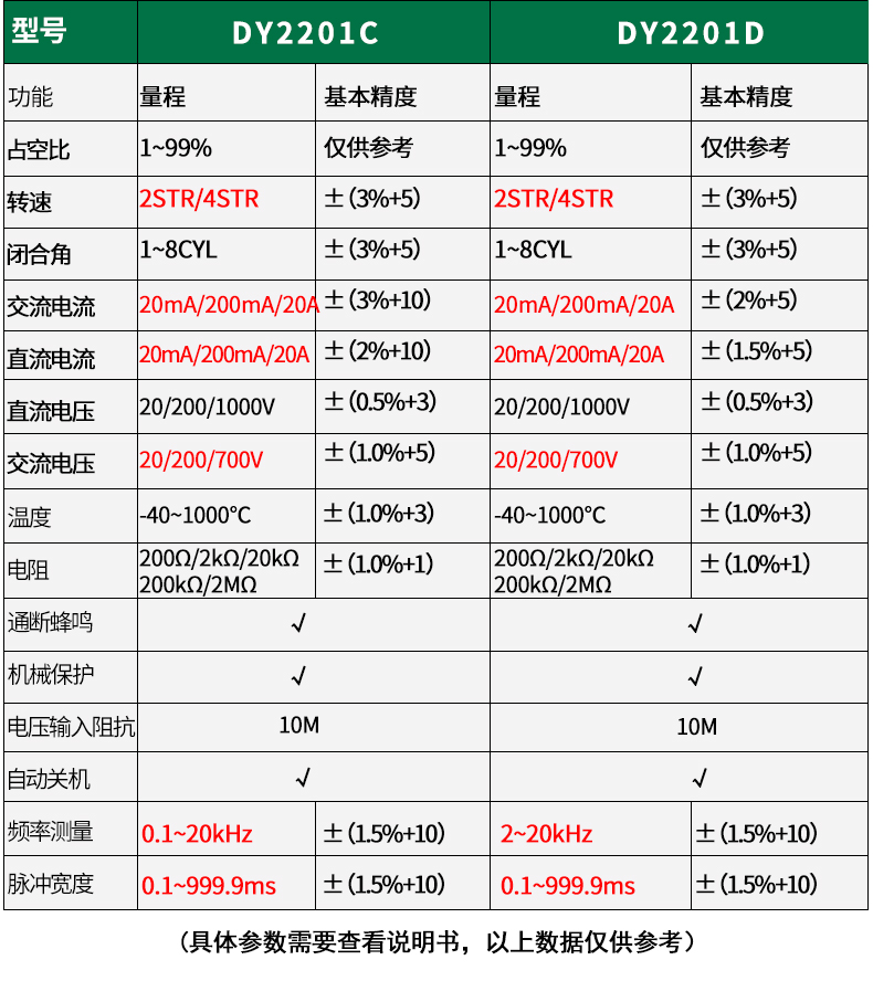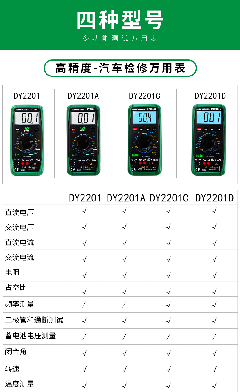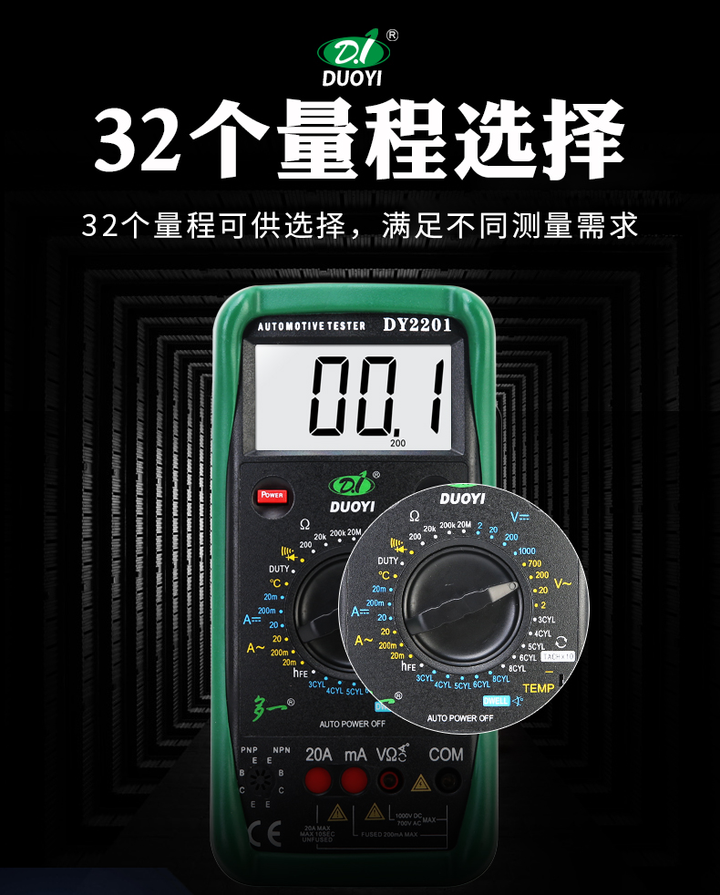 多一DUOYI DY2201B多功能汽車檢修萬用表