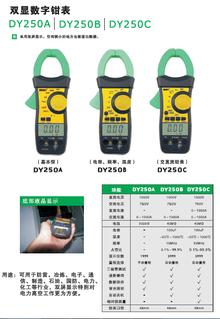 多一DUOYI DY250A 數(shù)字鉗形萬用表雙屏數(shù)顯鉗形表鉗表交直流電流測(cè)量表