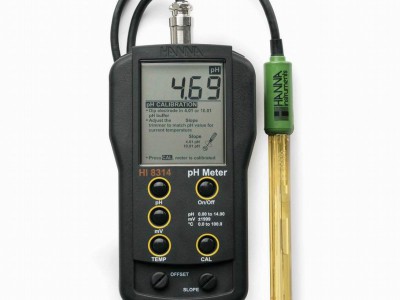 HI8314  pH/mV/°C 便攜式測量儀,儀表設計準確、可靠且易于使用。非常適合需要自定義校準點的應用,因為手動校準對于實現更好的精度非常有用。HI8314使用HI1217D預放大pH電極,內置內部溫度傳感器。