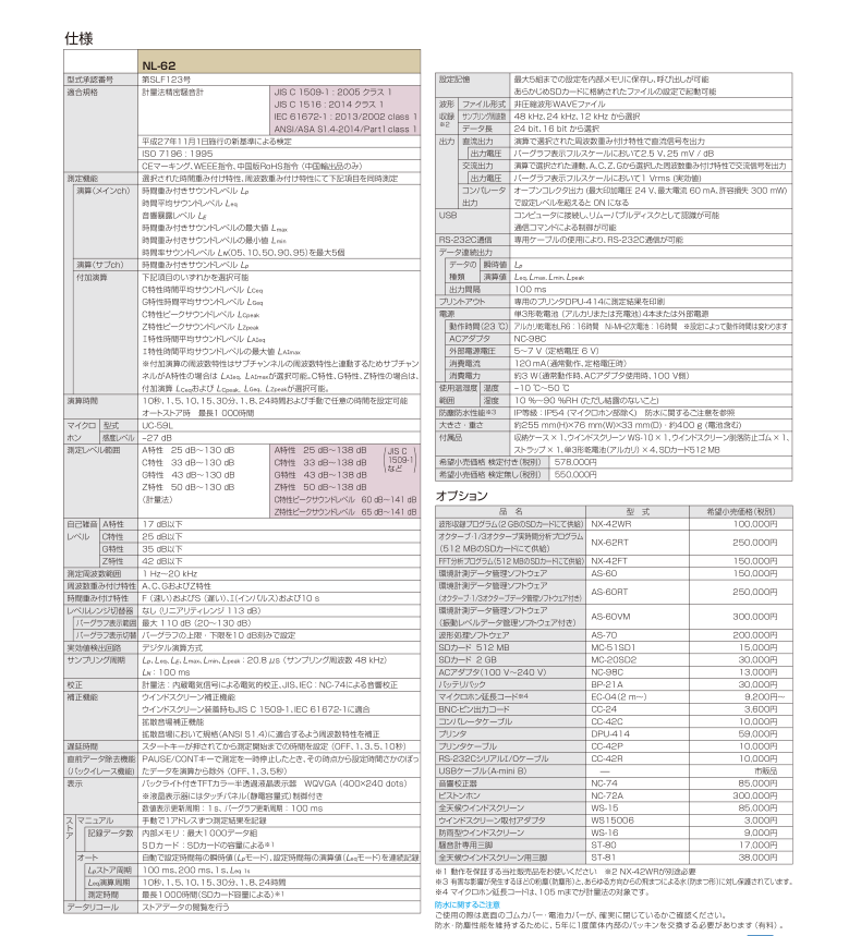 日本理音RION 噪音計 精密騒音計NL-62