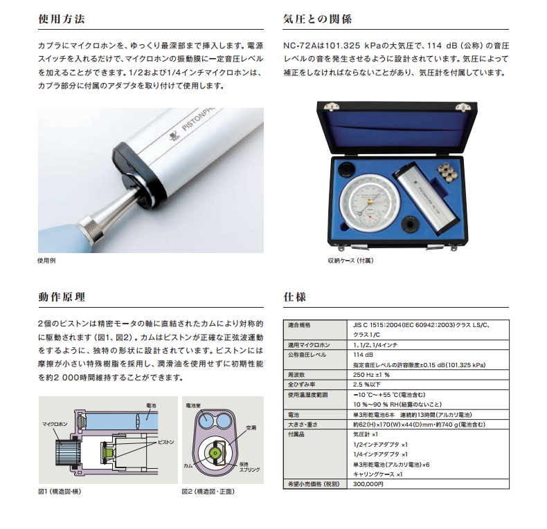 音圧レベル 114dB、250Hz の音を発生させる基準(zhǔn)音源