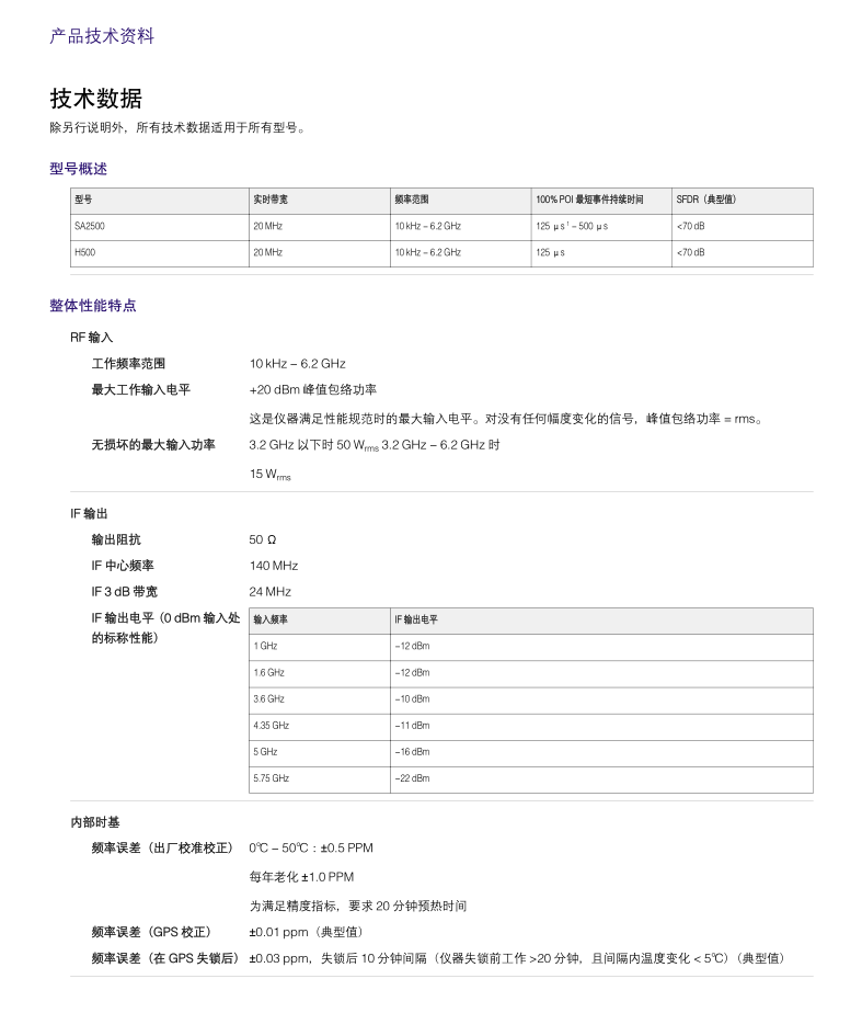 125 μs* - 500 μs 20 MHz <70 dB 10 kHz - 6.2 GHz