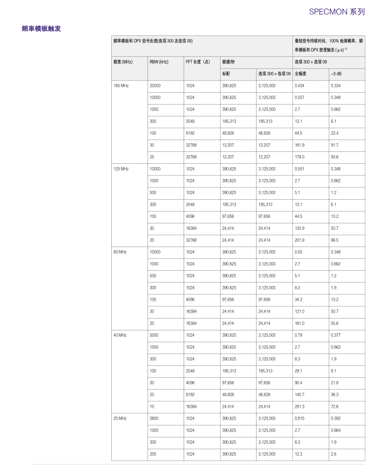 25 MHz、40 MHz、80 MHz、125 MHz 和 165 MHz