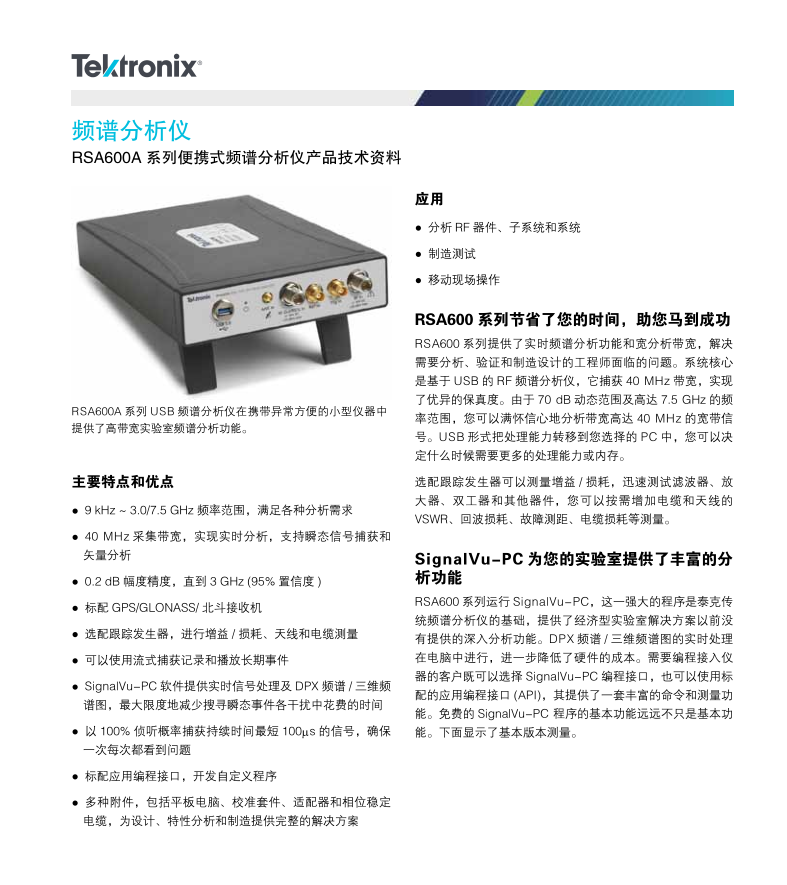 泰克Tektronix 實時頻譜分析儀 RSA607A
