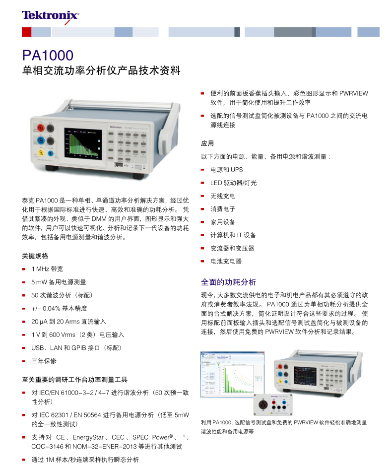 泰克Tektronix PA1000型功率分析儀 PA1000