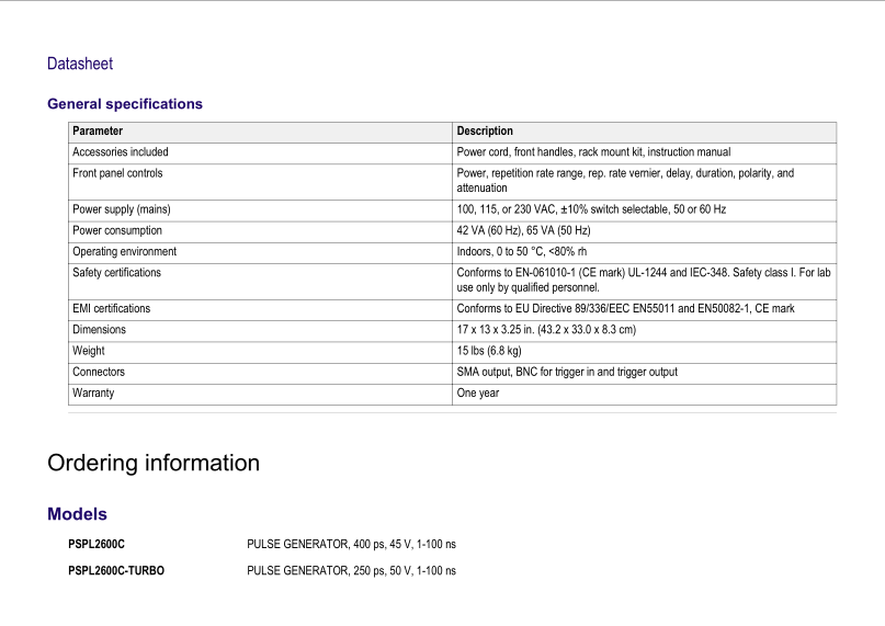 泰克Tektronix 脈沖信號發(fā)生器 PSPL2600C