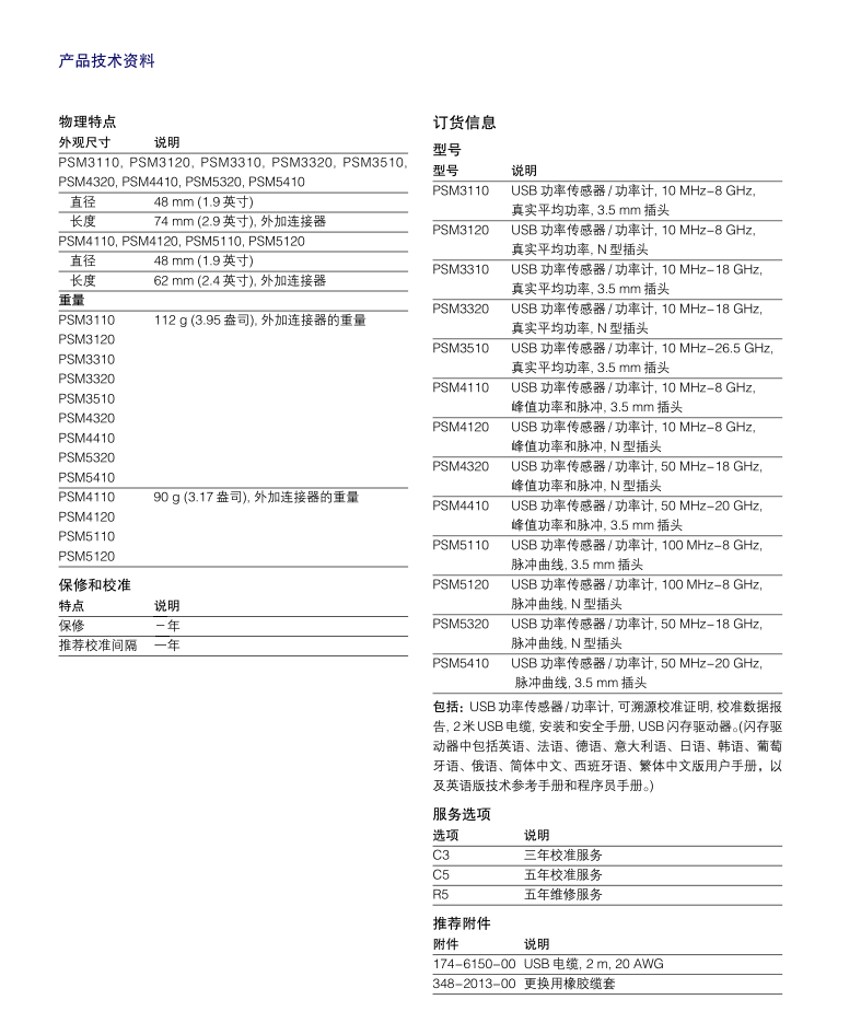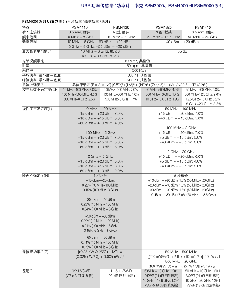 泰克Tektronix 微波功率傳感器/功率計 PSM5320