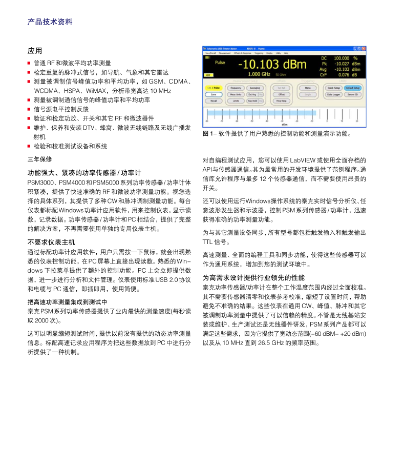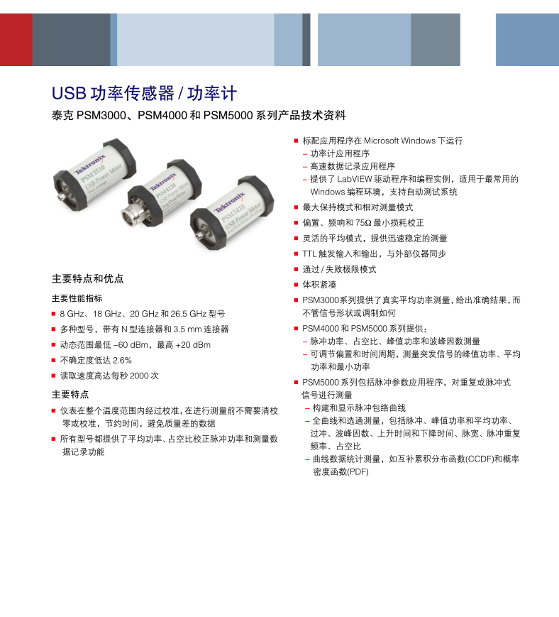 泰克Tektronix 微波功率傳感器/功率計 PSM5410