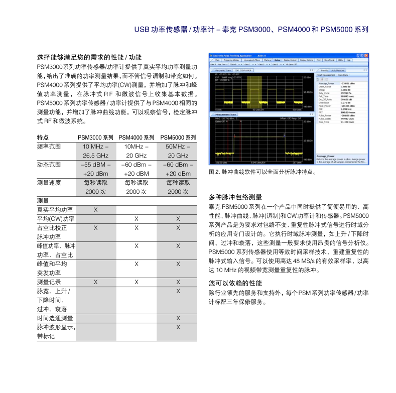 平均 (CW) 功率測量;占空比校正脈沖測量;峰值功率,脈沖功率;占空比測量;峰值功率,脈沖功率,占空比測量;