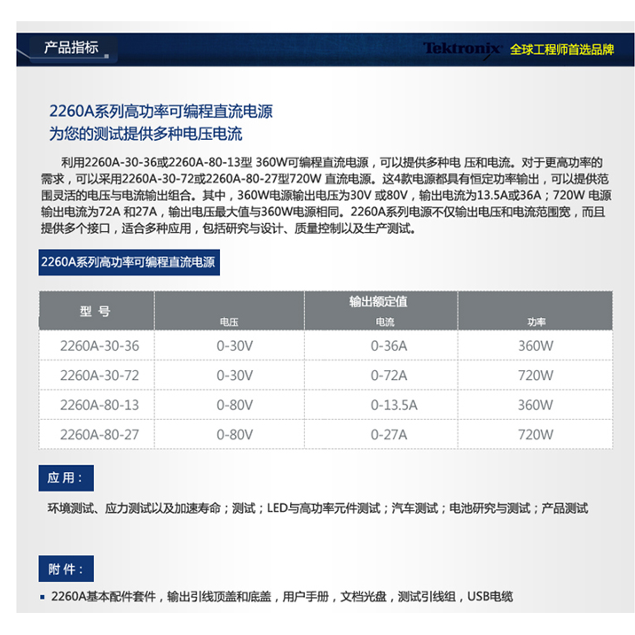 泰克Tektronix KEITHLEY吉時(shí)利2260A系列可編程直流電源360/720W 2260A-30-72