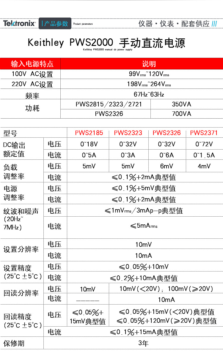 泰克Tektronix PWS4000系列可編程程控直流電源 PWS4205