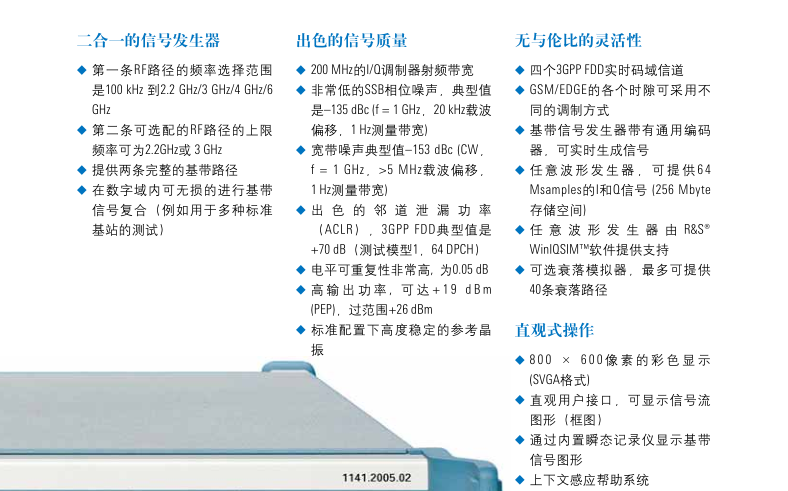 SMU200A不僅包含兩個獨(dú)立的信號發(fā)生器而且還具有無與倫比的射頻和基帶特性.