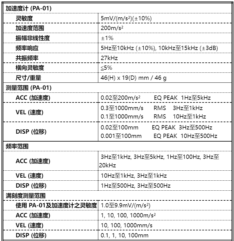 使用不同靈敏度的加速度計(jì)可得到較寬范圍之振動(dòng)測(cè)量