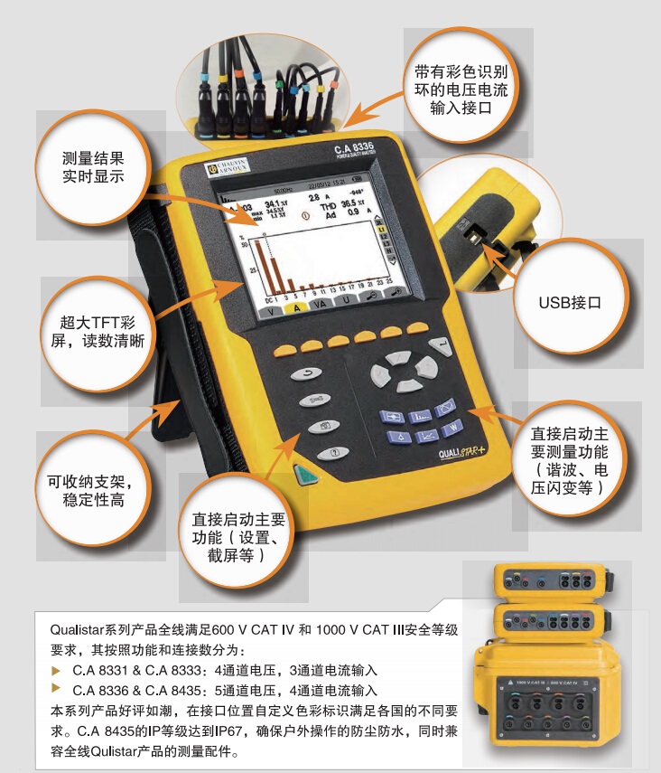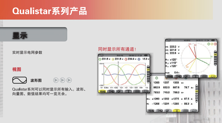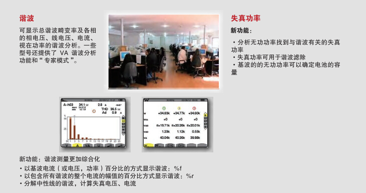 諧波模式下,各次諧波含量序列排列顯示,并計算總諧波畸變率