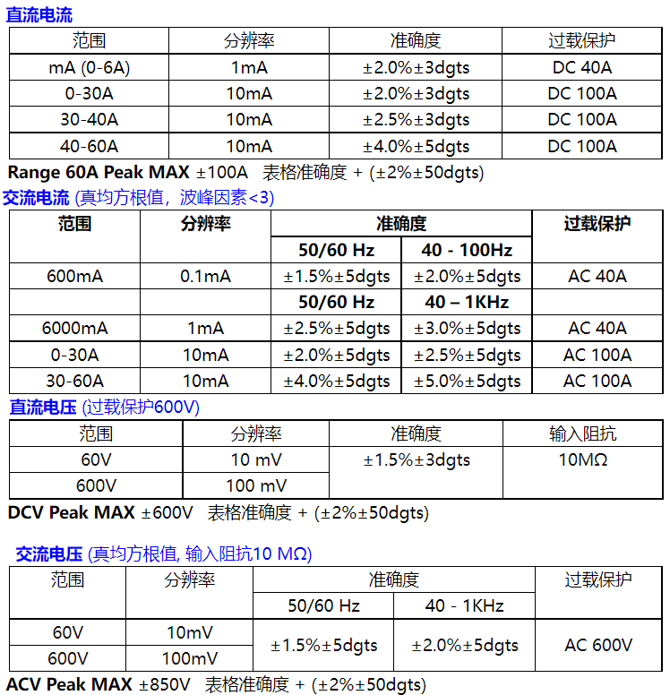 交直流電流 (mA, A) 量測(cè) 6A / 60A