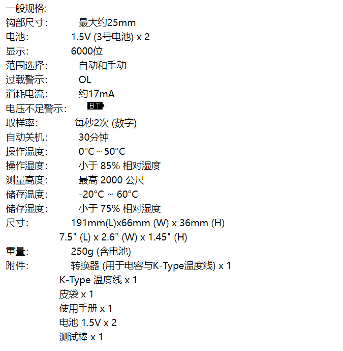 測(cè)量電壓 (AC/DC V)、電流 (AC mA)、電阻和電容時(shí),具自動(dòng)換檔 (Auto-Range) 功能