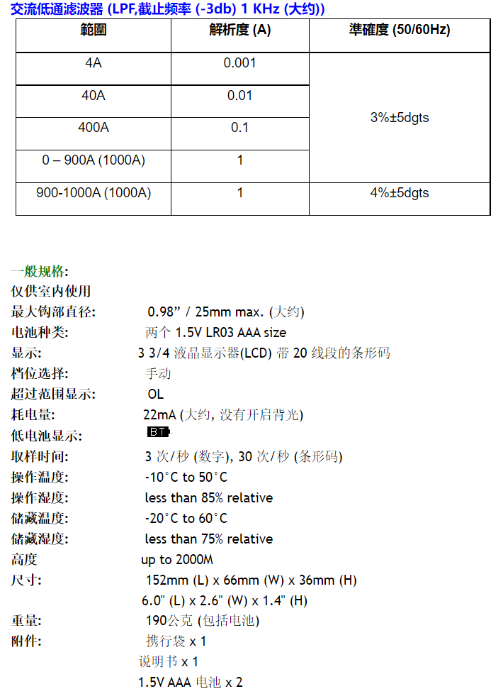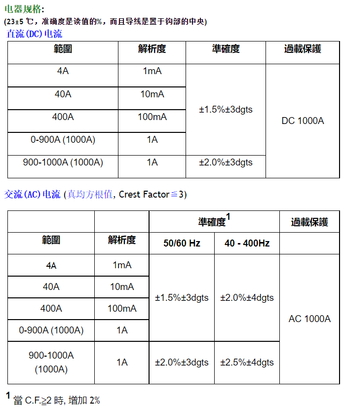 同時(shí)可量低電流1mA DC及大電流1000A DC