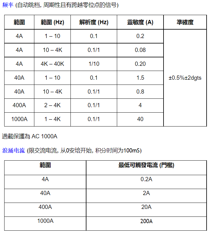 感應(yīng)式頻率測(cè)試 (最小感測(cè)電流0.06AC A)