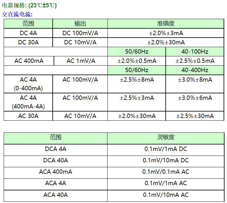 高分辨率:直流1mA (4A DC檔位); 交流0.1mA (400mA AC檔位)