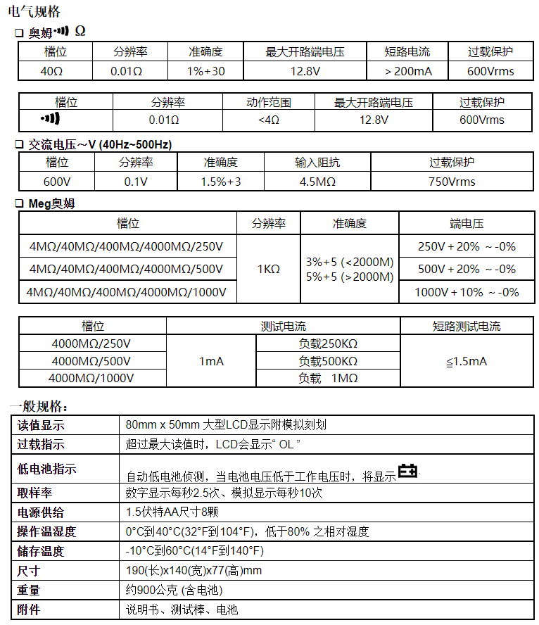 絕緣電阻測試儀/兆歐表