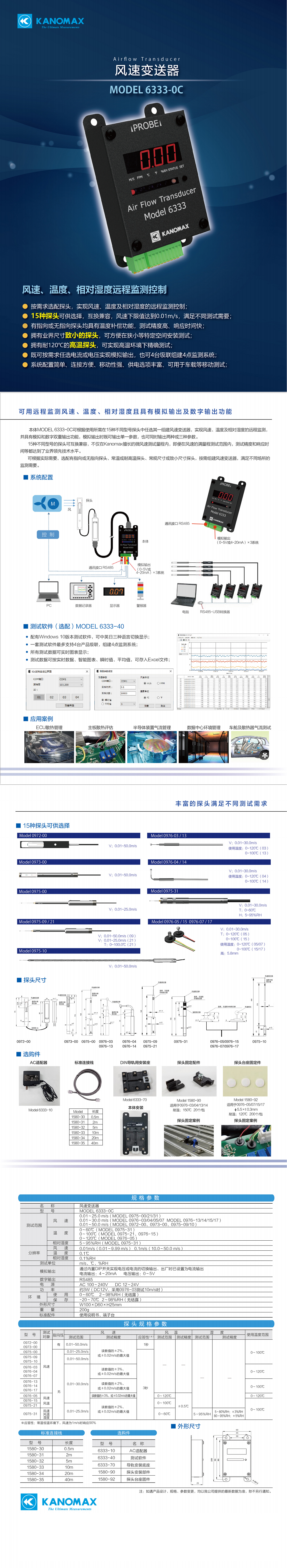 加野Kanomax 6333-0C 風(fēng)速變送器 (6333主機(jī)+0976-13探頭+10米電纜)